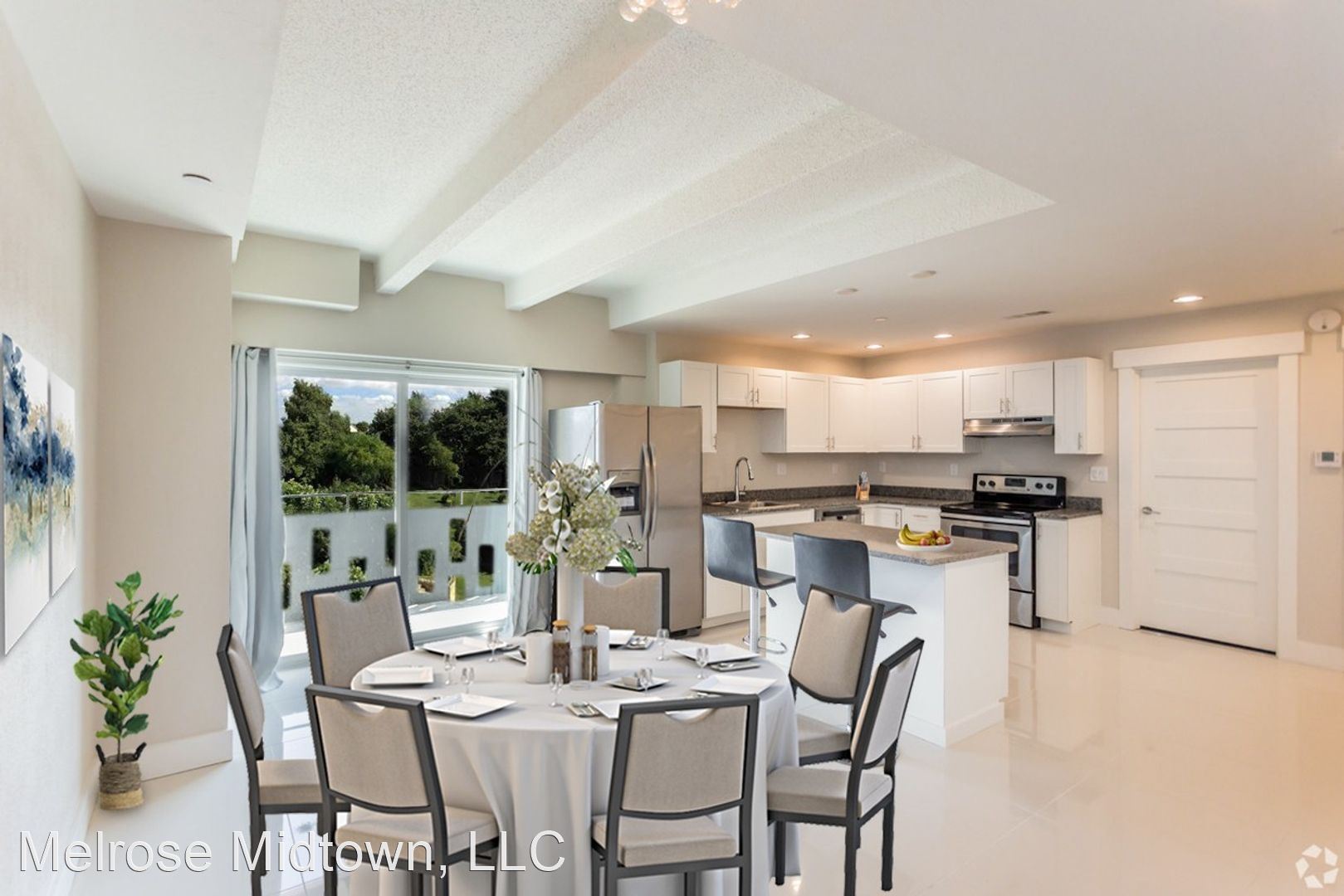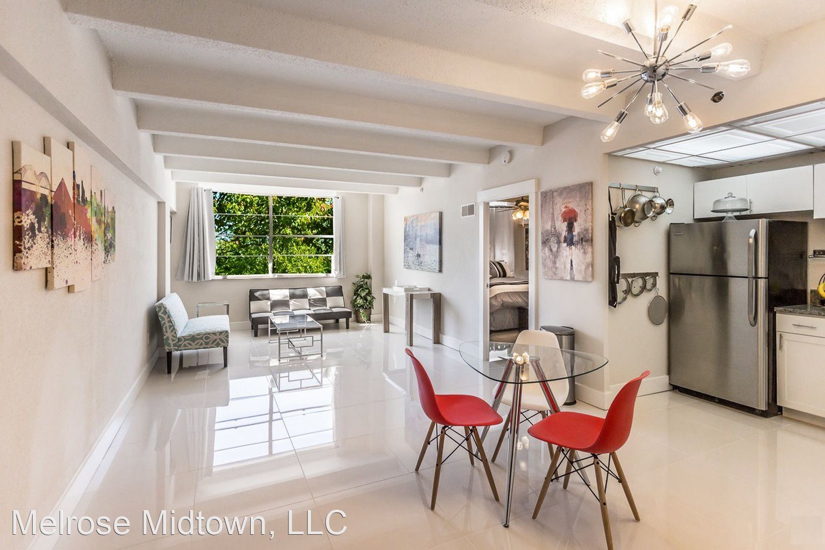 The Nikki Studio - If you're ready to right-size, you're ready for the Nikki: clean finishes, jewel box detailing, and extra-high ceilings with lighted fans. A walk-out balcony turns the whole outdoors into your bonus room. Most units have full-size stainless steel ranges and ovens and refrigerators. The Melrose won the 2019-2022 award for Best Apartment Community in all of Memphis. Find out why and take a tour today. Call today and get on the wait list (typically a few months long), because the Nikki is our most popular apartment!